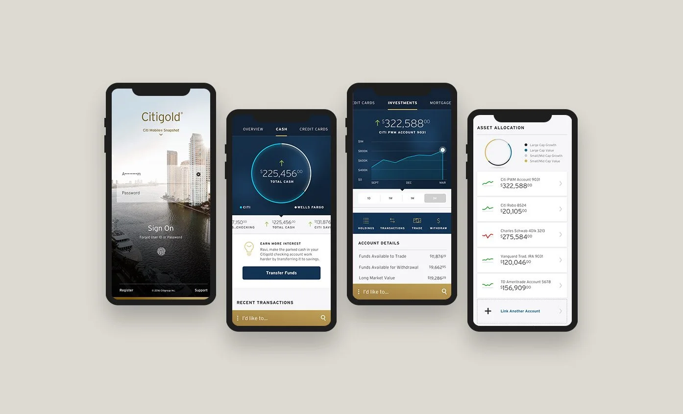 Imagine the bank of tomorrow. Working closely with the internal Citi Fintech division to develop a vision for a seamlessly connected end-to-end digital banking, guidance and financial platform targeted at the high net-worth Citigold customer.
