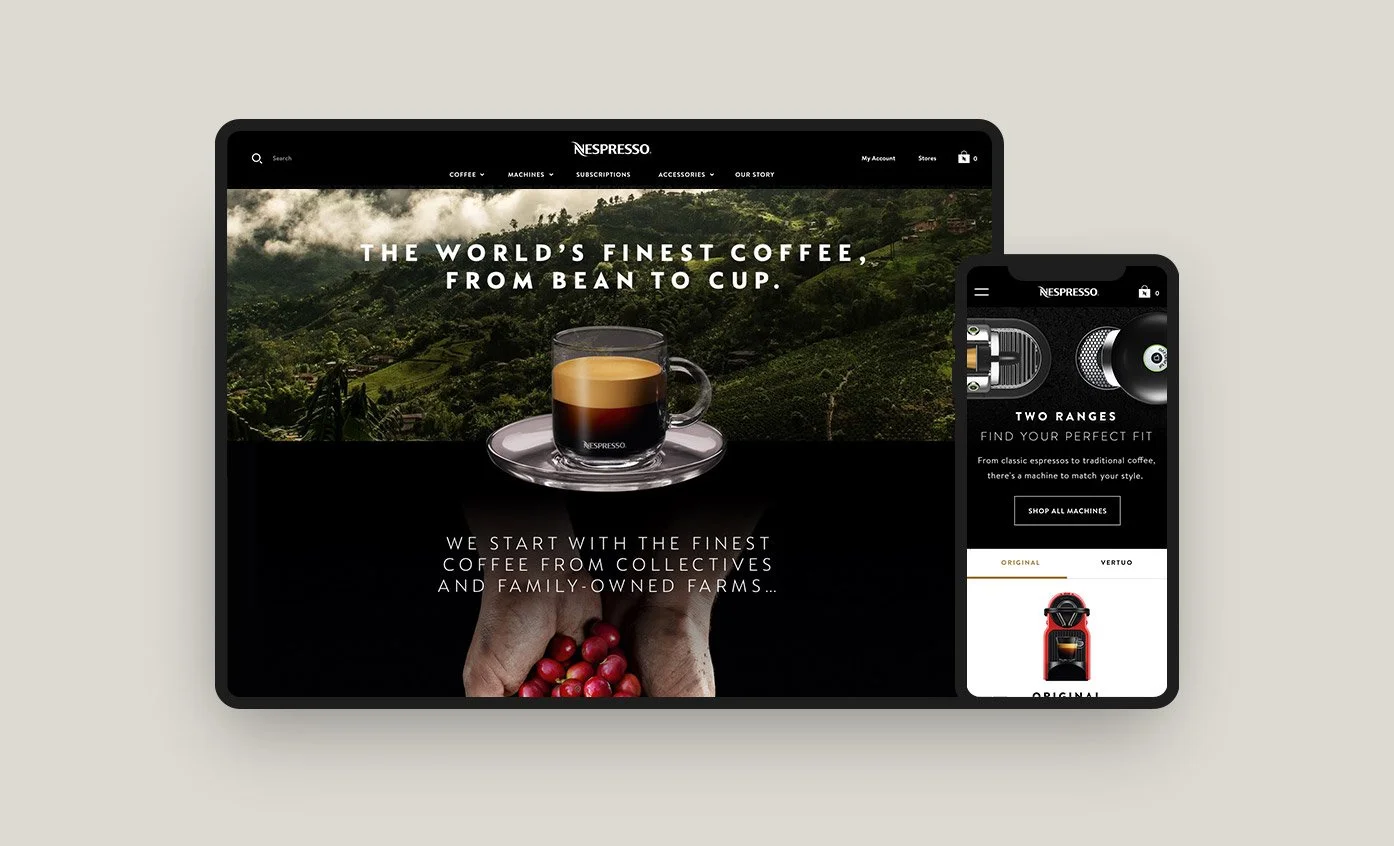 A strategic partnership aimed at revitalizing the Nespresso brand and overall site experience, leveraging user research to drive a reinvention that distinguishes nuanced products, tells sustainability stories, romances coffee, and has a renewed focus on subscription services.