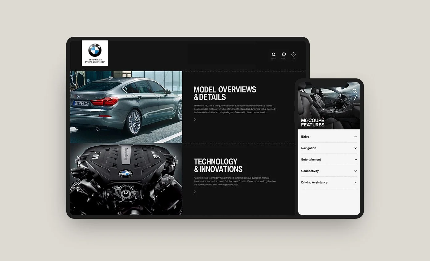 Early concept design of the Genius App for BMW, whose goal was to help owners get the most out of their vehicles and let prospective buyers explore BMW’s model lineup, product features and functionalities. Throughout the experience, the web app evolves from a reference for technical questions to a platform for exploring details about BMW features, tailored to each user and their vehicle–always conveyed in a way that is easy to access and comprehend..
